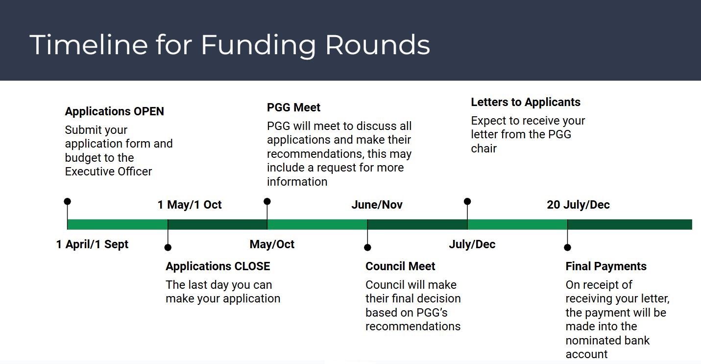 The grant guidelines, application and reporting documents are undergoing some changes and we hope to have these ready in time for the April funding round. Please be aware of this if you are thinking of applying for a grant in the new year and watch out for updates via the website and Pulse.