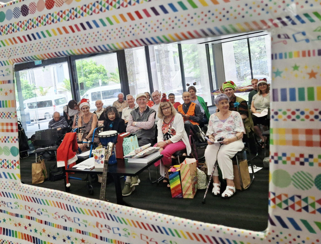 The CeleBRation Choir Christmas celebration marked the end of another year of singing and the completion (at last!) of my very long, part-time PhD at Waipapa Taumata Rau | University of Auckland School of Music and Centre for Brain Research (CBR). I would like to record a special thank you to my supervisors, Associate Prof Te Oti Rakena, Prof Suzanne Purdy, and Adjunct Prof Daphne Rickson NZ RMTh, for their support, guidance, and patience. Special thanks too to all my participants, including members and volunteers from the CBR’s CeleBRation Choir and the Kahikatea Music Therapy and Arts Trust’s Sing Up Rodney community group; and several members of Music Therapy New Zealand and Aphasia Choirs Go Global. I am also very grateful to Jenny Gordon NZ RMTh for a wonderful job-share partnership. Our honoured guests included the CeleBRation Choir’s number one supporter, Distinguished Prof Sir Richard Faull, founder of the CBR. Sir Richard is a semi- finalist for New Zealander of the New Year and is semi-retiring to become an ambassador of the CBR. We were also delighted to meet the new CBR Director, Prof Hanneke Hulst, a neuroscientist from The Netherlands. We were also pleased to be joined by Linda Webb, MThNZ President, and many other supporters from the University.
