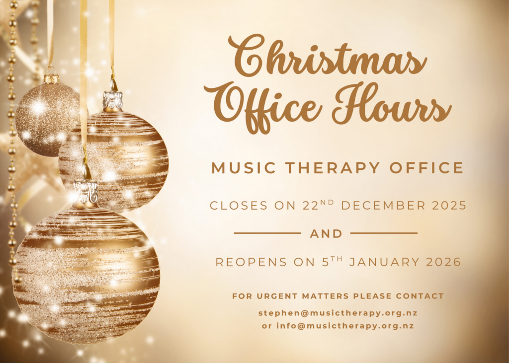 As we close out the year, I want to acknowledge your support of Music Therapy New Zealand in what has been another busy year in our community.