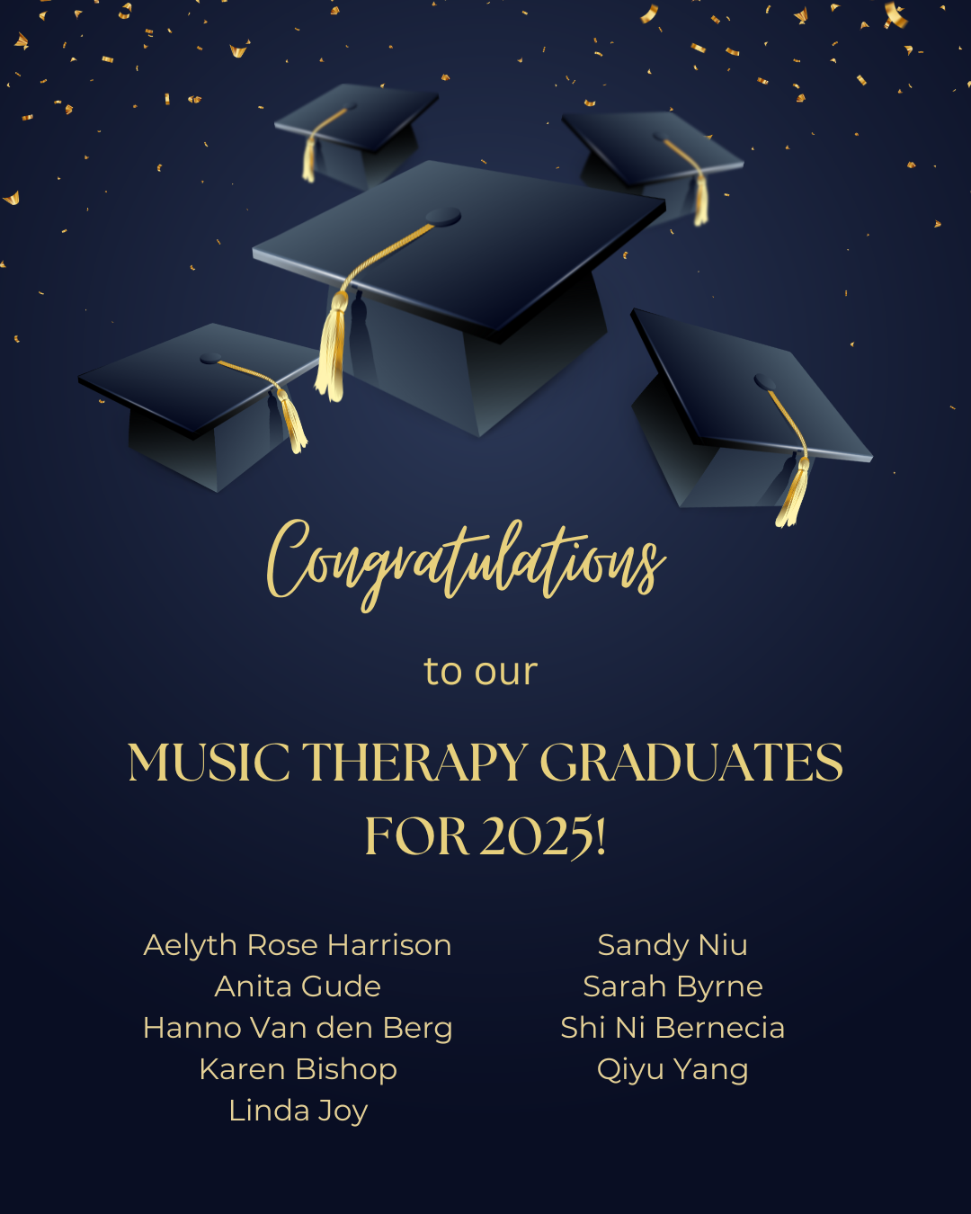 Thank you to all who continue to advocate for Music Therapy and the very appreciated professional leadership of Stephen our Chair. Enjoy the festive season and hopefully a refreshing break before we resume in the New Year.